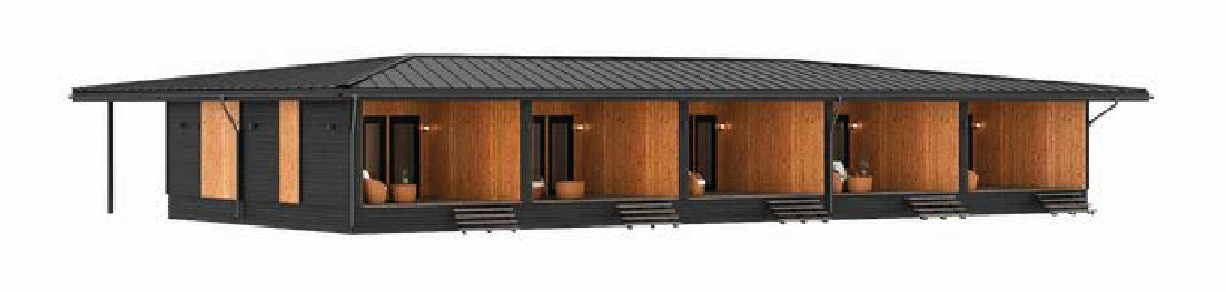Гостиничный комплекс предусматривает 1−2-этажные отдельно стоящие или сблокированные деревянные домики, с общим номерным фондом 200−300 номеров, местами общего пользования — лекционными залами, кафе, банными комплексами, спортивными площадками.